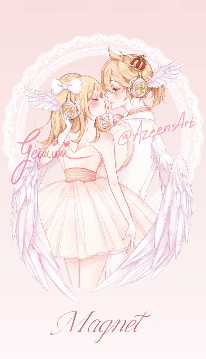 We made this fanart from this gorgeous official art (lot of years has passed and we still 💘✨ this) #kagamine #lenkagamine #rinkagamine #magnet