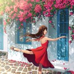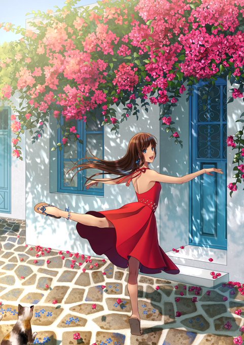 ブーゲンビリアと踊る💐 #女の子 #イラスト #創作
