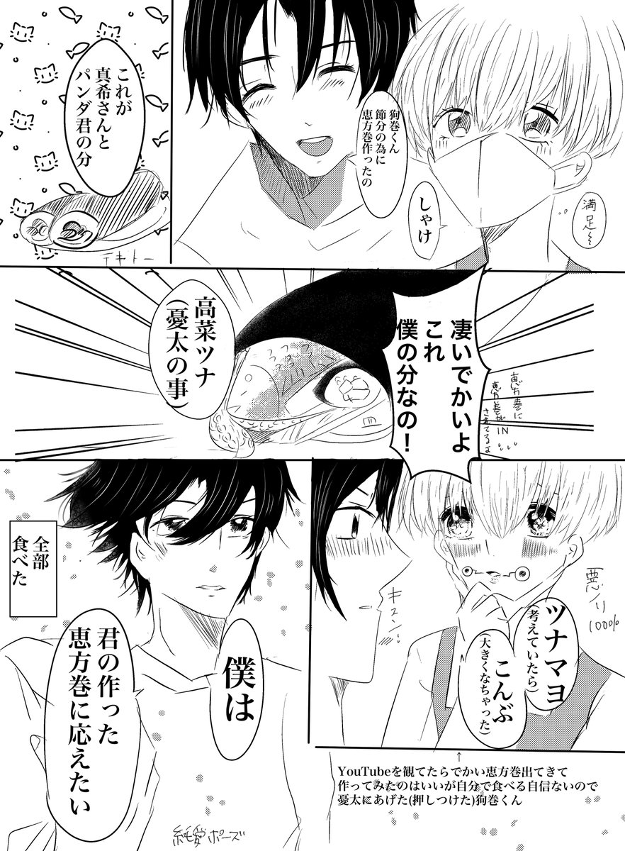 5 27 #乙棘版ワンドロワンライ 遅刻しました。 お題 節分 あとで🌹「💍先輩は自分の作った物は必ず残さないで食べてくれるって思ったから作ったんでしょ」って 突っ込まれて 赤くなる🍙先輩 22/01/30 00:37