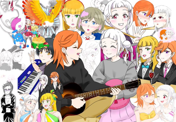 【今月のまとめ】 今月の目標は『挑戦』 苦手な色塗りを克服するためカラー絵ばかり描いていたし、表紙や挿絵付きの小説やしきメイの漫画にもチャレンジできた月でした! 来月もかのちぃとよしりこをお願いします🎧🐙😈🌸 7月もよろしくお願いします🙇 #今月描いた絵を晒そう