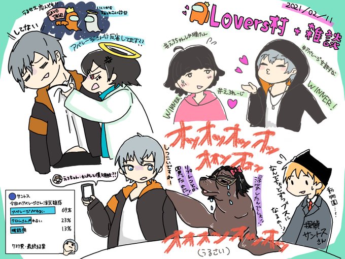 先日の恋人村めっちゃ面白かった〜! 他にも描きたいとこいっぱいあったけどとりあえずこれだけ… えろちゃんさんのタグ分からなかったすみません(´-`) #画レージ #なつめせんせ絵 #黒い夢美術館 #アマングトス