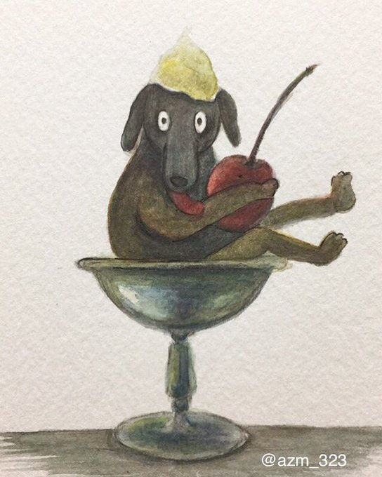 [3時のおやつ] [Three o'clock snack] . . . (Instagram) instagram.com/azm_323 #illustration #dog #azumakaori #犬 #いぬ #イラスト #水彩