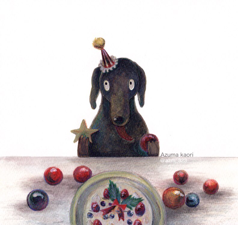 2018.12.15 [Happy party] Merry Christmas! Instagram→ instagram.com/azm_323 #drawing #illustration #dog #azumakaori #犬 #いぬ #イラスト #水彩 #クリスマス #くりすます