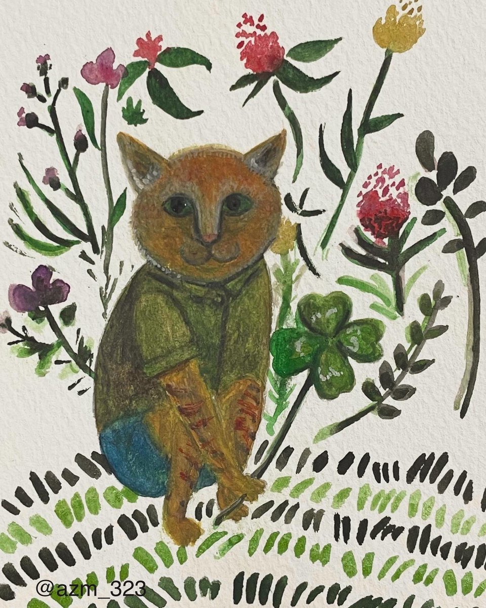 ▽ [白詰草] [White clover] . . . 庭に大量発生する白詰草。 四葉が多く群生するらしく、 ある年に実家に帰った際、弟が庭から持ってきてくれた四葉。 日記に挟んで綺麗にぺたんこになりました𖥧 𖧧 . . . #illustration #Watercolor #cat #Clover #ねこ #猫 #イラスト #水彩 #四つ葉のクローバー