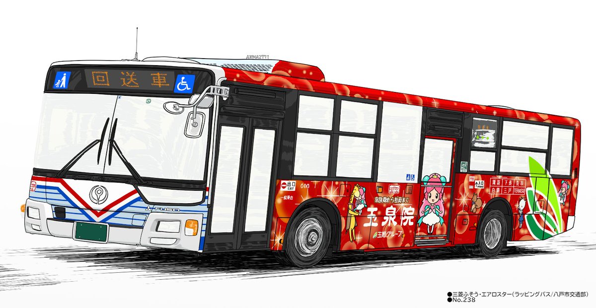 市内で見かける市営バスラッピングバスのイラスト。 ここまできたら、コンプしようかしら? #八戸市 #八戸市営バス #路線バス #イラスト