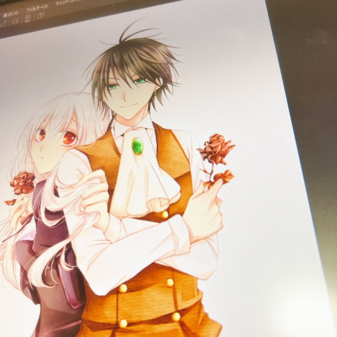そろそろ全国に出回りましたかね? #悪役令嬢はヒロインを虐めている場合ではない 2巻カバーイラストの全体図です。 ちょうどモニターを買い替えたこともありドレスの赤色が思ってた通りの色に塗れました👗🍓 あとはレーナが持ってるデザートシャンパン…潰れるとわかっていても描くの好き…🥂 twitter.com/azooya/status/…