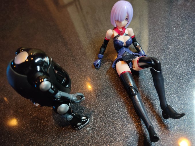 今日は #週末模型会 。今回は #メガミデバイス エクスキューショナーちゃんを組立。エクソシストより個人的にはとっつきやすく、組みやすいと感じた。お供に #千値練 の #メカトロウィーゴ くろを添えることに(店回りで保護)。色合いも合っているので良いコンビかなと。
