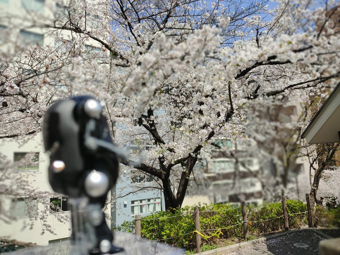 2 13 #メカトロウィーゴ と一緒にお花見…久し振りな気がした。今日合流した「くろ」と共にお花見。 21/03/27 23:23
