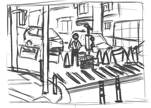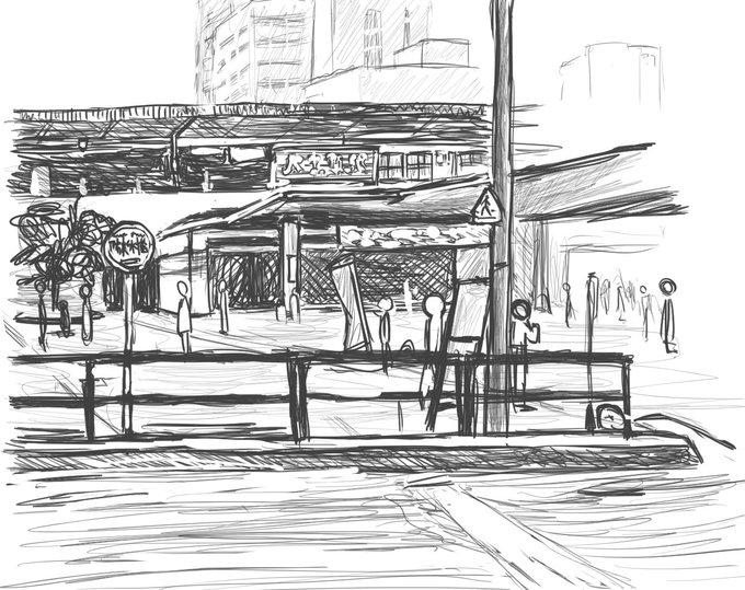 #100日チャレンジ 72日目 撮った写真の模写(めっちゃ住宅街なので念の為モザイク処理) 一昨日と昨日の反省を踏まえて、フリーハンドでパースと位置関係とサイズ感を意識しながら徐々に形を整えていく方式にしてみた。これならそんなに破綻せずに、かつイライラせず続けられそう
