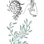 #100日チャレンジ 82日目 ランダムに選んだ3色+白黒だけを使って絵を描いてみる遊び。特に下はバランス取れず苦戦したけど思い切って黒をバーーンって乗せたら解決した。色のバランス取る練習に良さそう