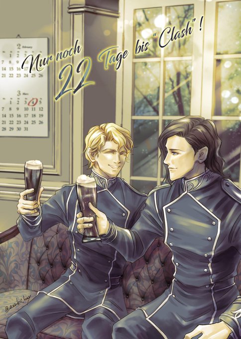 #今月描いた絵を晒そう スーツな双璧 お題「ワイン」でロイエル 閣下のお誕生日祝い ハロウィン 自分の好きな感じのロイエルいっぱいと、過去一カッコイイみったが描けた月でした💕 画力は上がらんが、素材職人としての腕は上がってきた気がするw