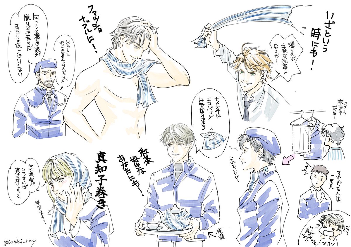 #今月描いた絵を晒す 頂いたお題(とズレちゃったけど)のノイエ版閣下 M版ビッテン&オイゲン ユリカリ💕 あとロイエル画集用の絵をいろいろ描いてました✨ 入らなかったけどスーツビッテンも今月でしたね 結構頑張った〜