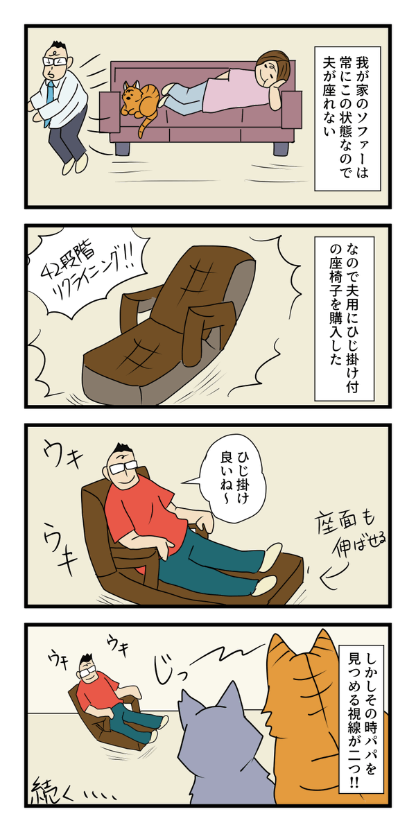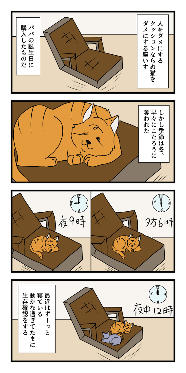 猫漫画 「座イスは誰のもの?」 ブログ「保護猫と暮らす あずとこた」hogonekoto.comで猫4コマ漫画書いてます! #ねこ #猫 #猫好きさんと繋がりたい #猫の居る暮らし #猫がいる暮らし #イラスト #エッセイ #漫画 #猫との生活 #猫がいる幸せ