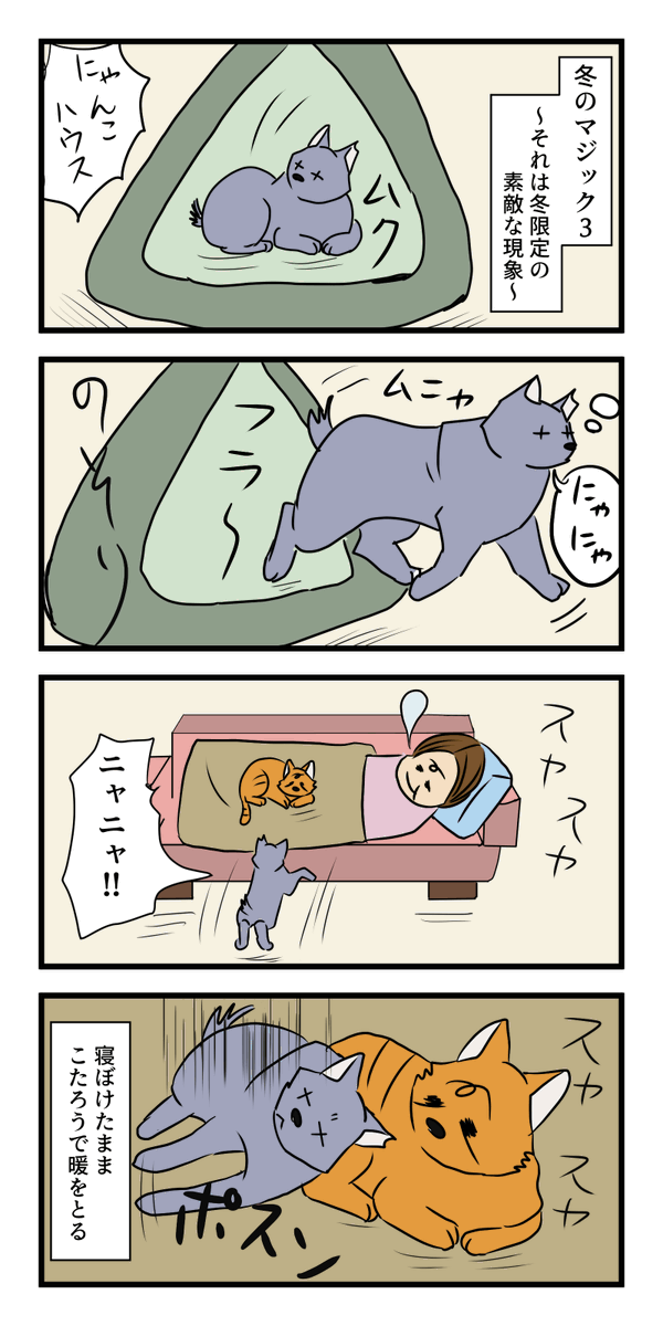 0 3 猫漫画 「冬のマジック3」 ブログ「保護猫と暮らす あずとこた」hogonekoto.comで猫4コマ漫画書いてます! #ねこ #猫 #猫好きさんと繋がりたい #猫の居る暮らし #猫がいる暮らし #イラスト #エッセイ #漫画 #猫との生活 #猫がいる幸せ 22/06/01 11:06