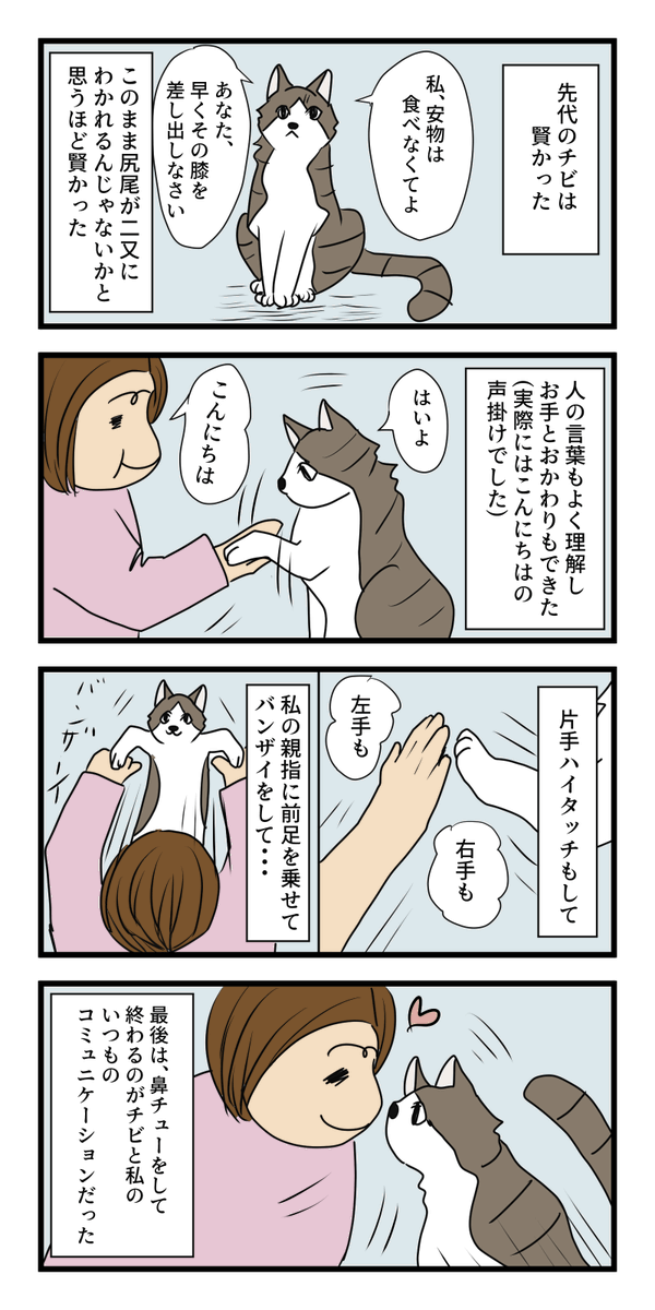 1 12 猫漫画「こんにちはハイタッチバンザイ鼻チュー」 ブログ「保護猫と暮らす あずとこた」hogonekoto.comで猫4コマ漫画書いてます! #ねこ #猫 #猫好きさんと繋がりたい #猫の居る暮らし #猫がいる暮らし #イラスト #エッセイ #漫画 #猫との生活 #猫がいる幸せ 22/09/09 21:55