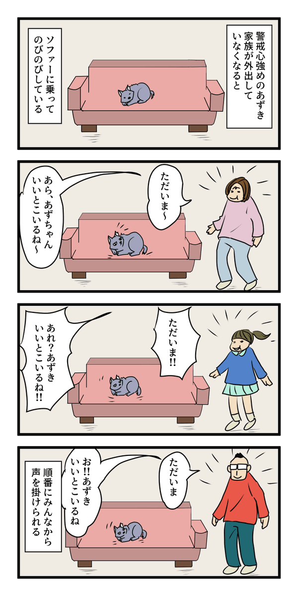4 13 「娘に熱烈お出迎え」 ブログ「保護猫と暮らす あずとこた」hogonekoto.comで猫4コマ漫画書いてます! #ねこ #猫 #猫好きさんと繋がりたい #猫の居る暮らし #猫がいる暮らし #イラスト #エッセイ #漫画 #猫との生活 #猫がいる幸せ 22/01/02 20:24