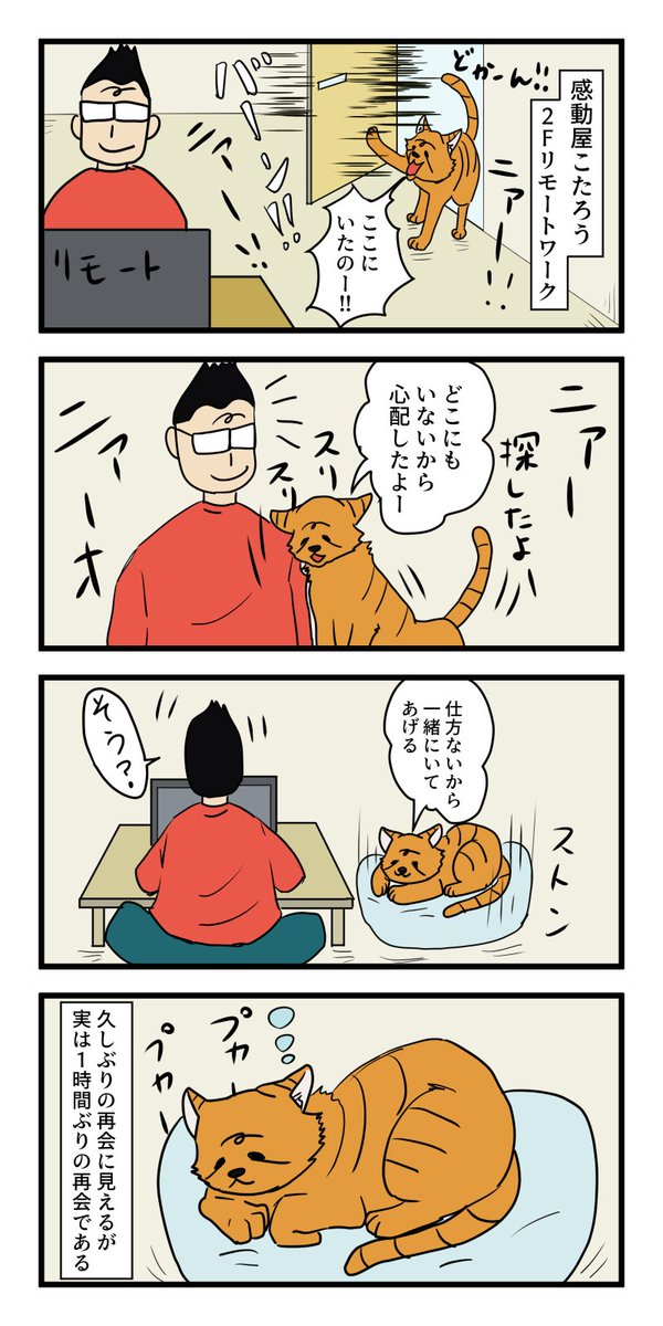 0 1 猫漫画 「感動屋こたろうの感動の再会」 ブログ「保護猫と暮らす あずとこた」hogonekoto.comで猫4コマ漫画書いてます! #ねこ #猫 #猫好きさんと繋がりたい #猫の居る暮らし #猫がいる暮らし #イラスト #エッセイ #漫画 #猫との生活 #猫がいる幸せ 22/10/22 19:02