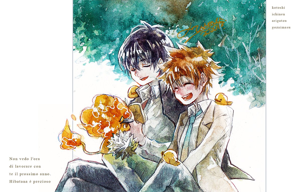 「謹賀新年令和三年」ヒバツナ 描き初め🐥🐟表情筋緩み過ぎて誰おまですが🐥🐟です