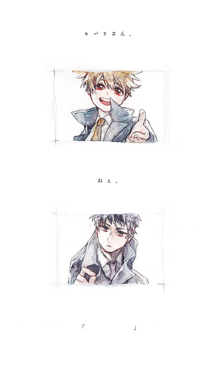58 279 「一緒に、きてくれませんか?」 🐥🐟ヒバツナマンスリー/last 10年後も描けたぜ...🤟 絵的に一緒にいってくれるけど、多分あとで「僕並盛離れないからね」って言いそう 21/02/06 20:44