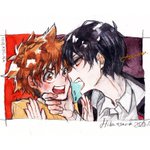68 268 #ヒバツナワンドロ お題:花火 「 頭の中で花火がなった 」🐥🐟 1.5hドロでした🥺 本物花火をアナログで1時間はきついのでちょい捻りで 21/08/16 23:34