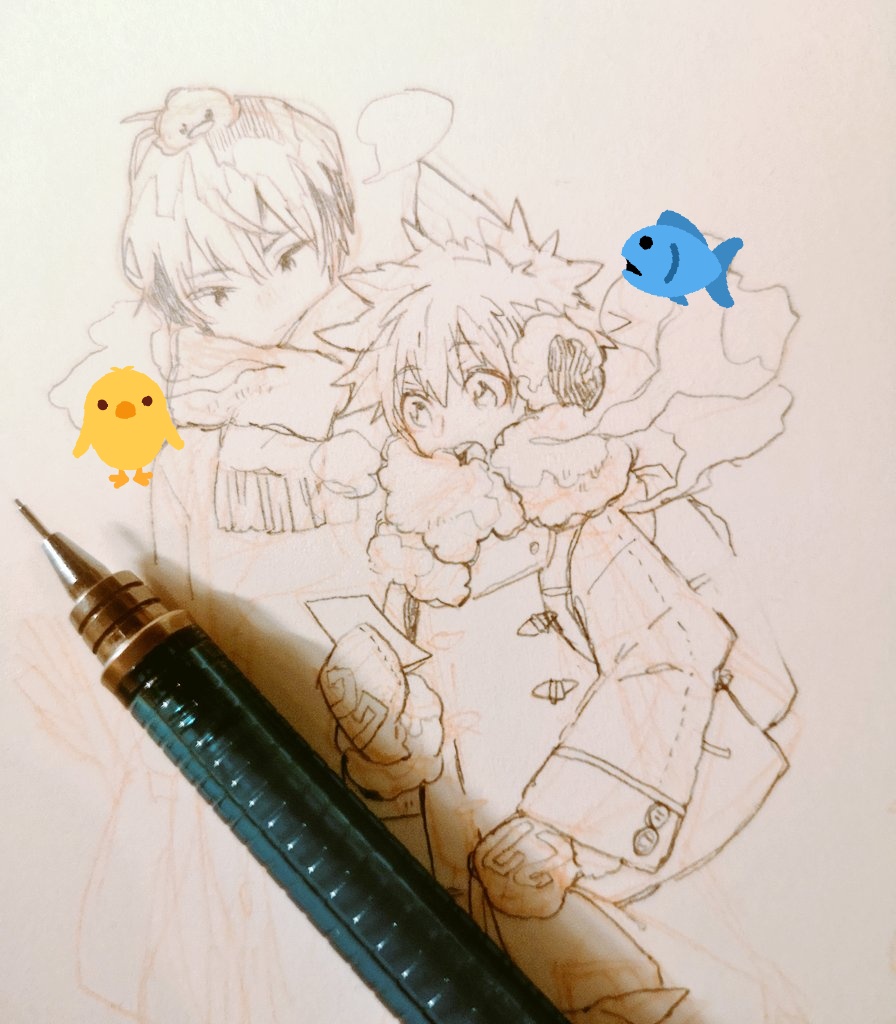 「号砲が鳴る」🐟 辺り一面に響け。 リハビリ~🎨 +10の気持ちで描いてたけどお顔が幼くなったわ