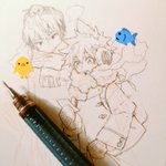 お久しぶりです覚えてますか覚えてなくてもいいのですが東です🌚 私事で忙しかったりなんだりあったのですが、現在入院・手術を経て療養中です🤤流行りのアレではないよ… 現状報告ではありますが、置土産に入院前に描いた🐥🐟ちゃん供養!💪💪がんばって復活します