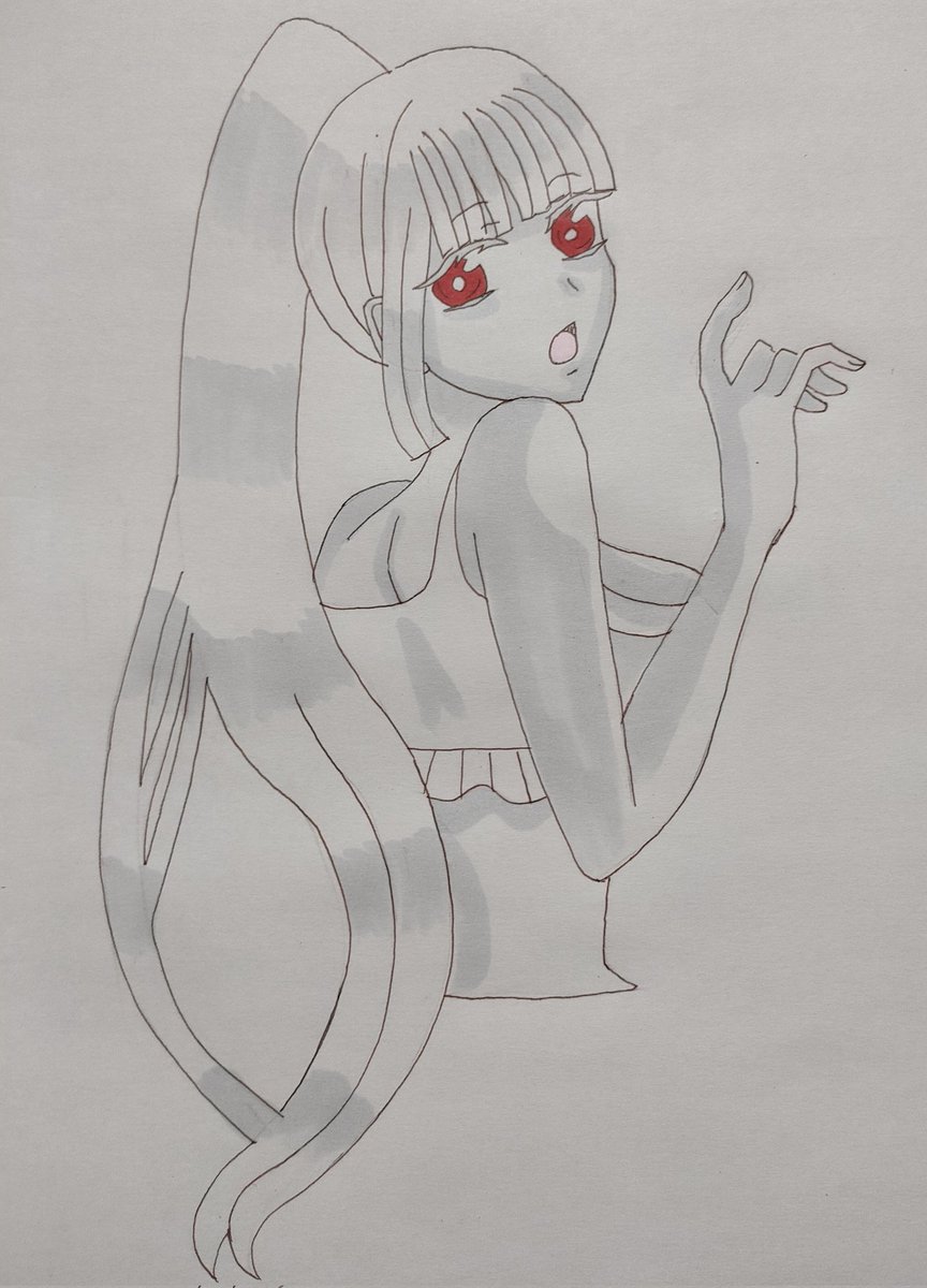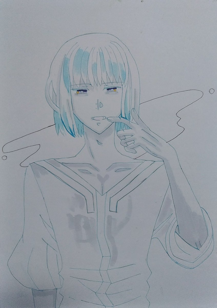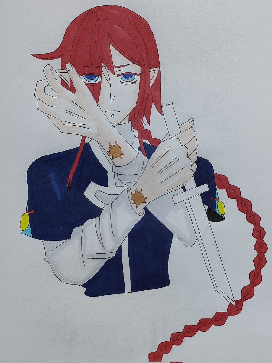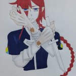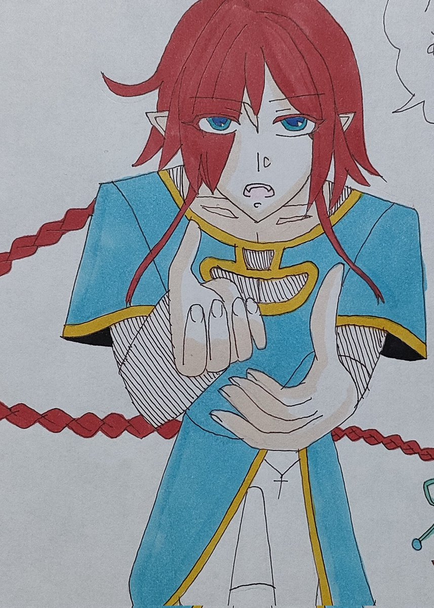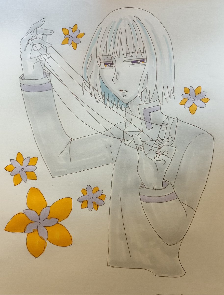 #絵柄が好みって人にフォローされたい ログヒストくん。 魔力の糸で物や相手を操る。 常に無表情のおじいちゃん。 弱視。味覚、寒さを感じない。左耳が聴こえない。 呪いにより、弟と五感を分け合っている。 C-1のコピックかさかさ😱何気に銀髪多いから、買わねば!!