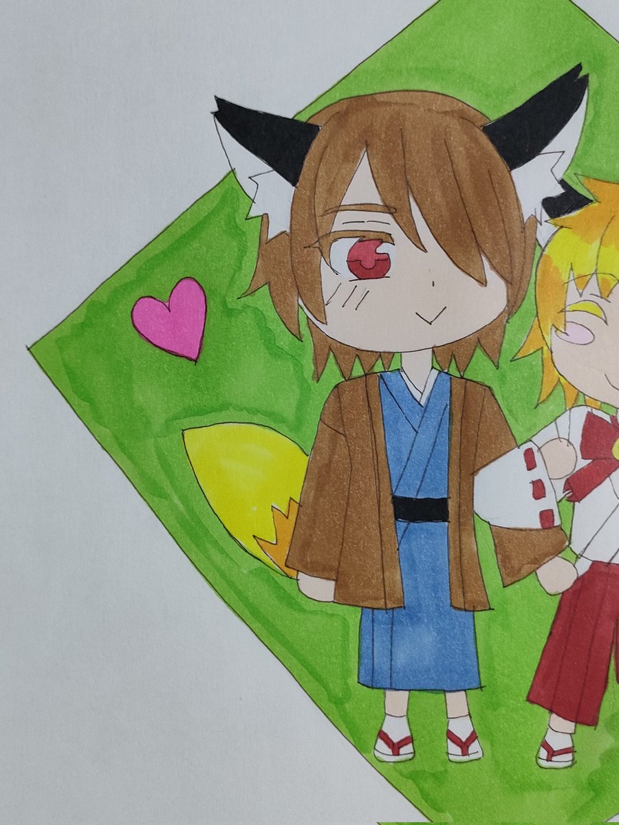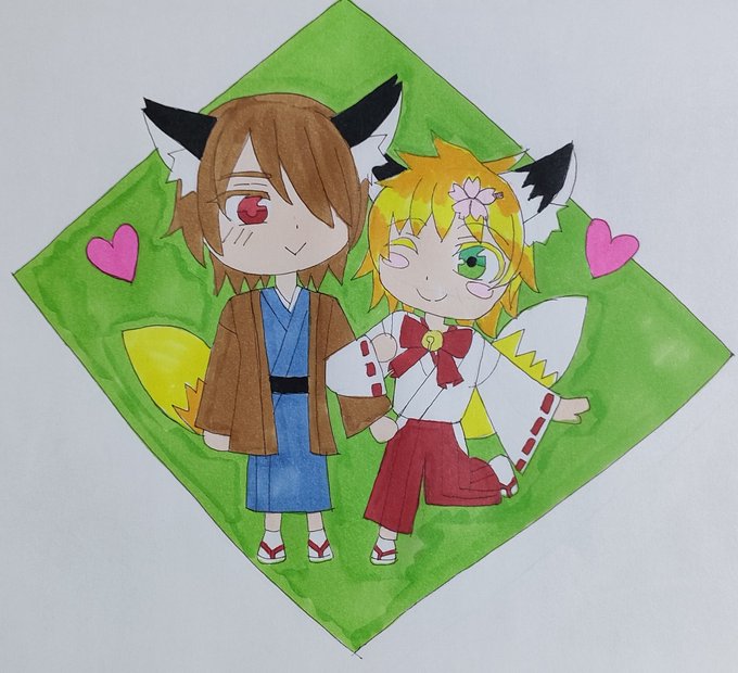 #リネの創作ファンアート @rinene3 またまた〜😳ファンアートテロの時間で〜〜すっ🤩ぱふぱふ〜🤣 お次は〜!! 牡丹兄さん🥳!!もふもふさせて!! 牡丹「・・・・・いい加減にしろ(怒)(しっぽぱたぱた)」