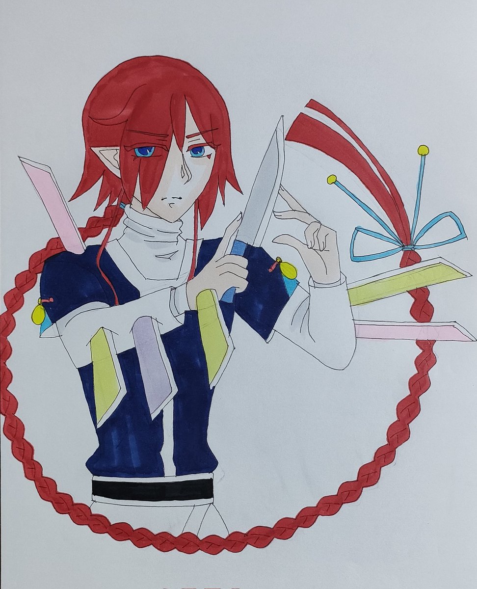 #絵柄が好みっていう人にフォローされたい #うちの子描いてみませんかキャンペーン ジュザくん。腕の傷は幼い頃折檻で、杭で打たれた跡。奴隷時代に掠め取ったナイフを体内に75本隠している。思い込みが激しい性格で、主人がいないと生きていけないと思い込み、セレに依存している。
