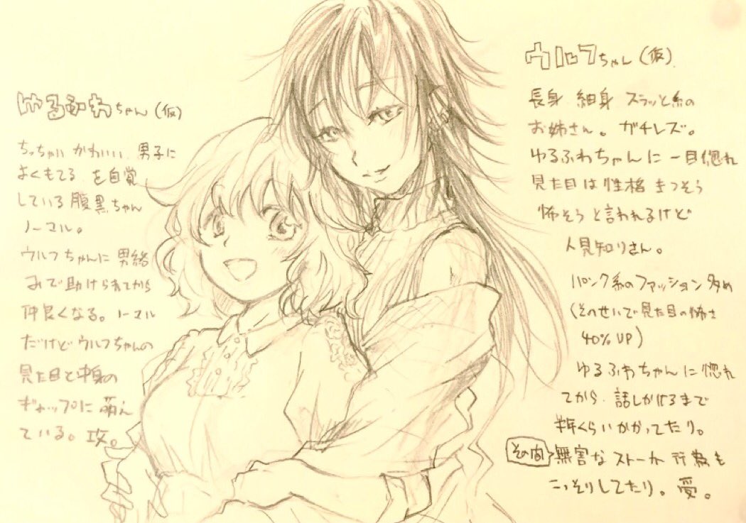 おんなじラフから3人らくがき 画面直撮りのためモアレひどいです。