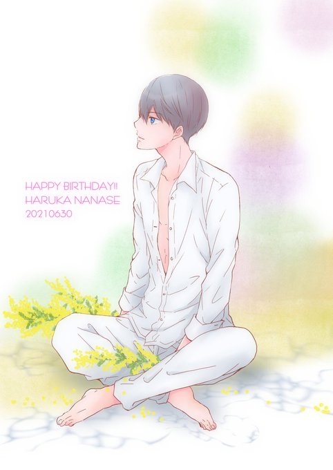 ハルちゃんお誕生日おめでとう~!!!劇場版新作で夢に向かう姿を見届けること、今からとっ……ても楽しみにしています!!✨🏊♂️💦✨ #七瀬遙生誕祭2021 #七瀬遙誕生祭2021