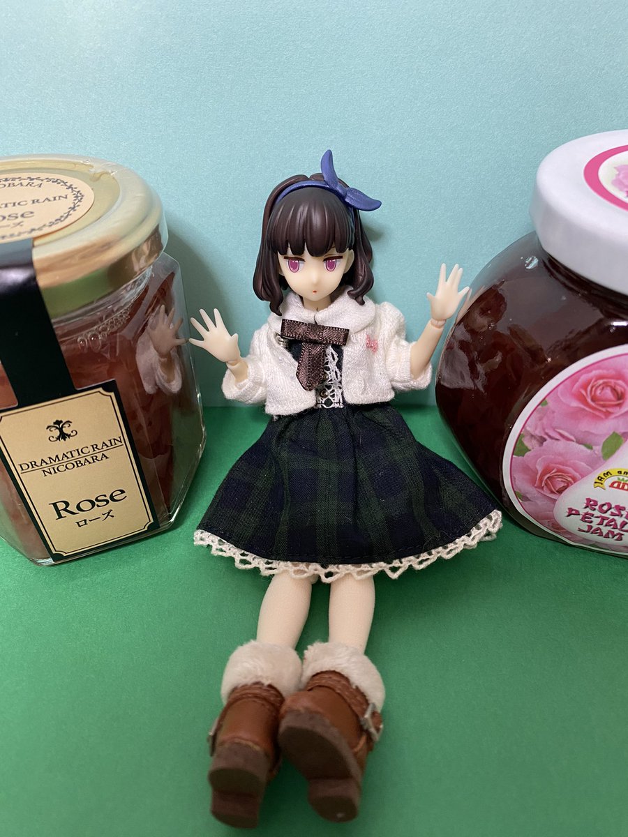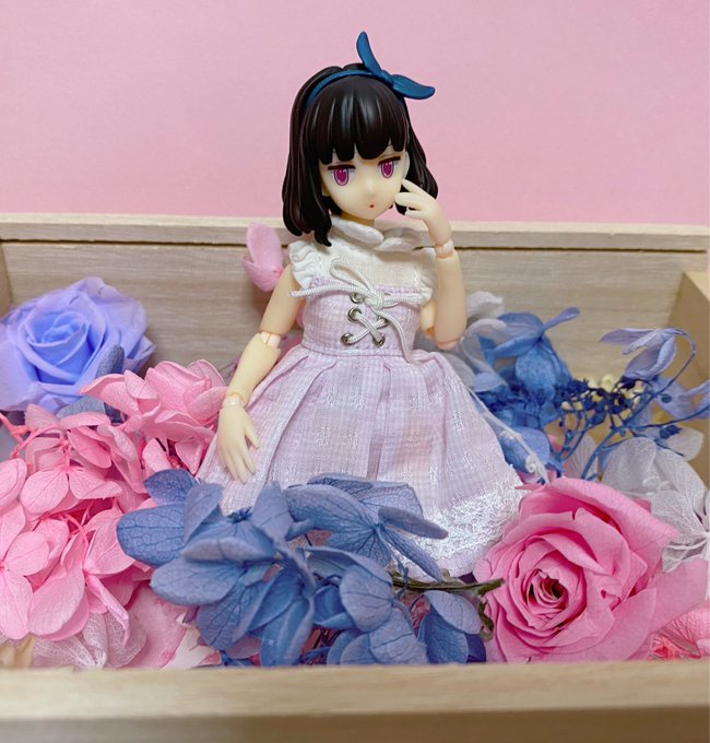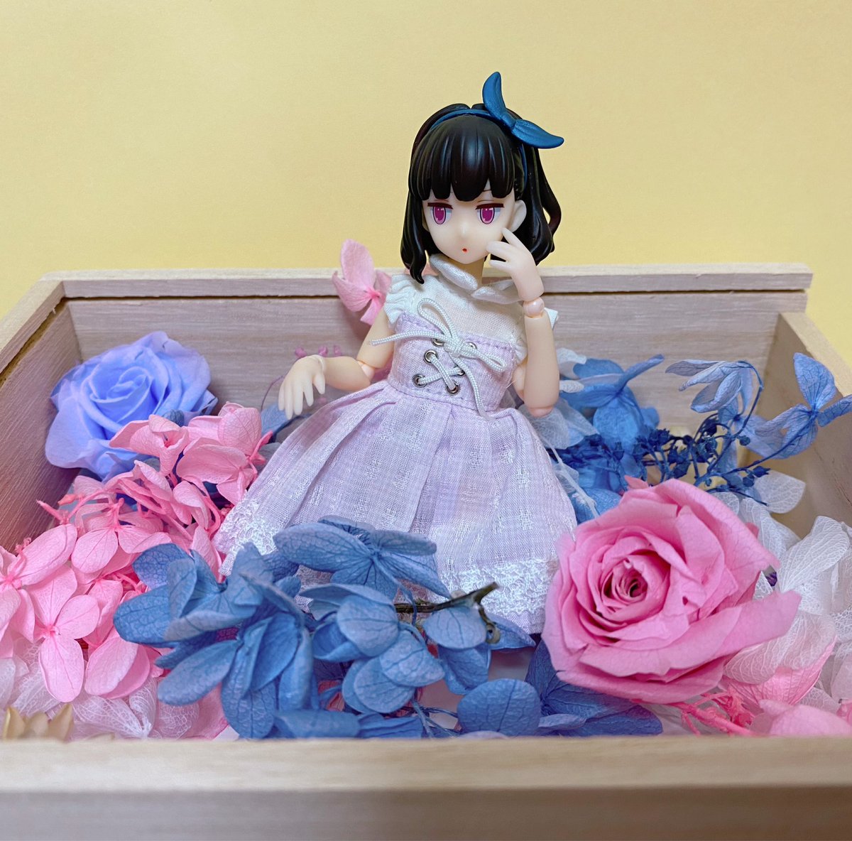 プリザーブドフラワー届いたーっ🌹 お花に囲まれた生活がしたいという願望があって、せめてドールサイズならお花だらけの世界にできると思って…。 百合亜様とてもお似合いですわ🌹 #アサルトリリィドール部