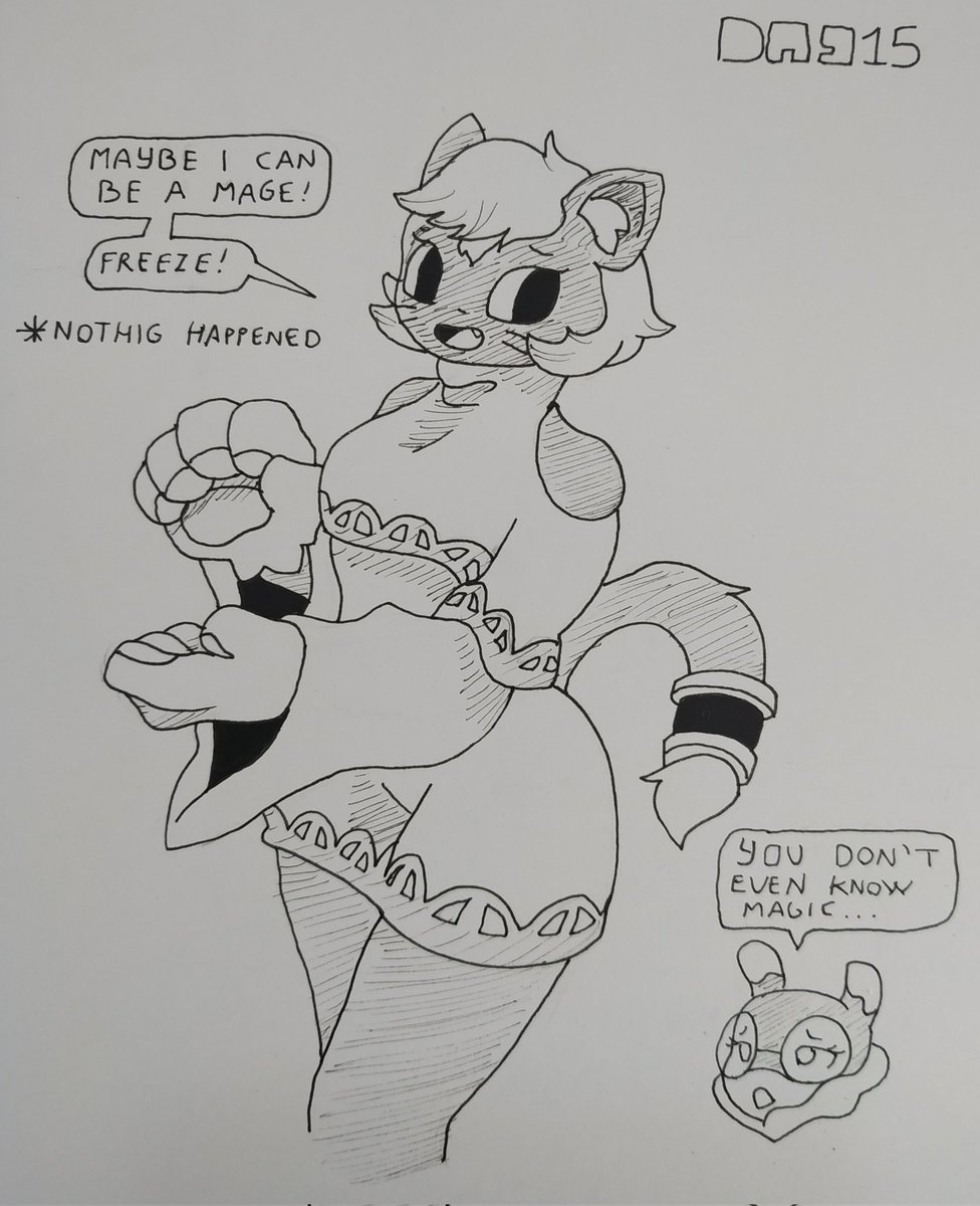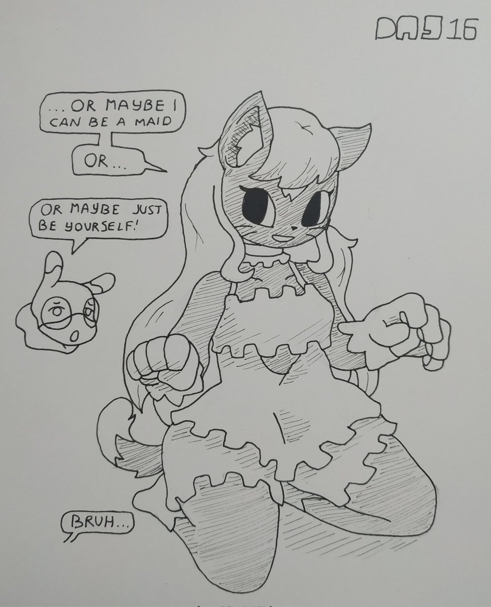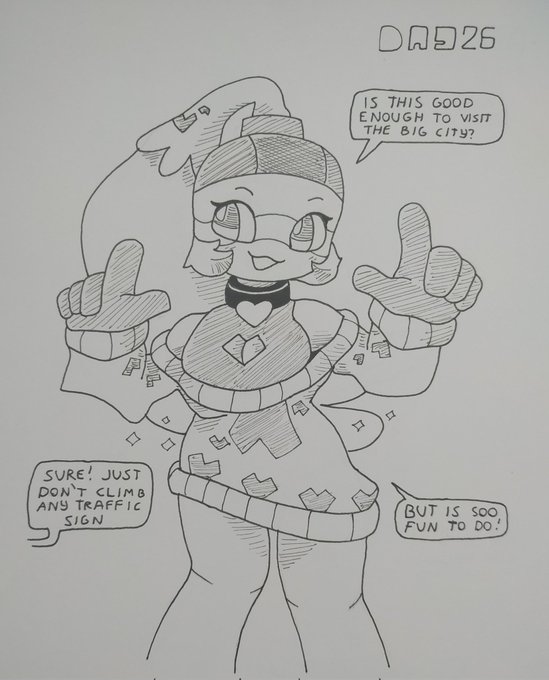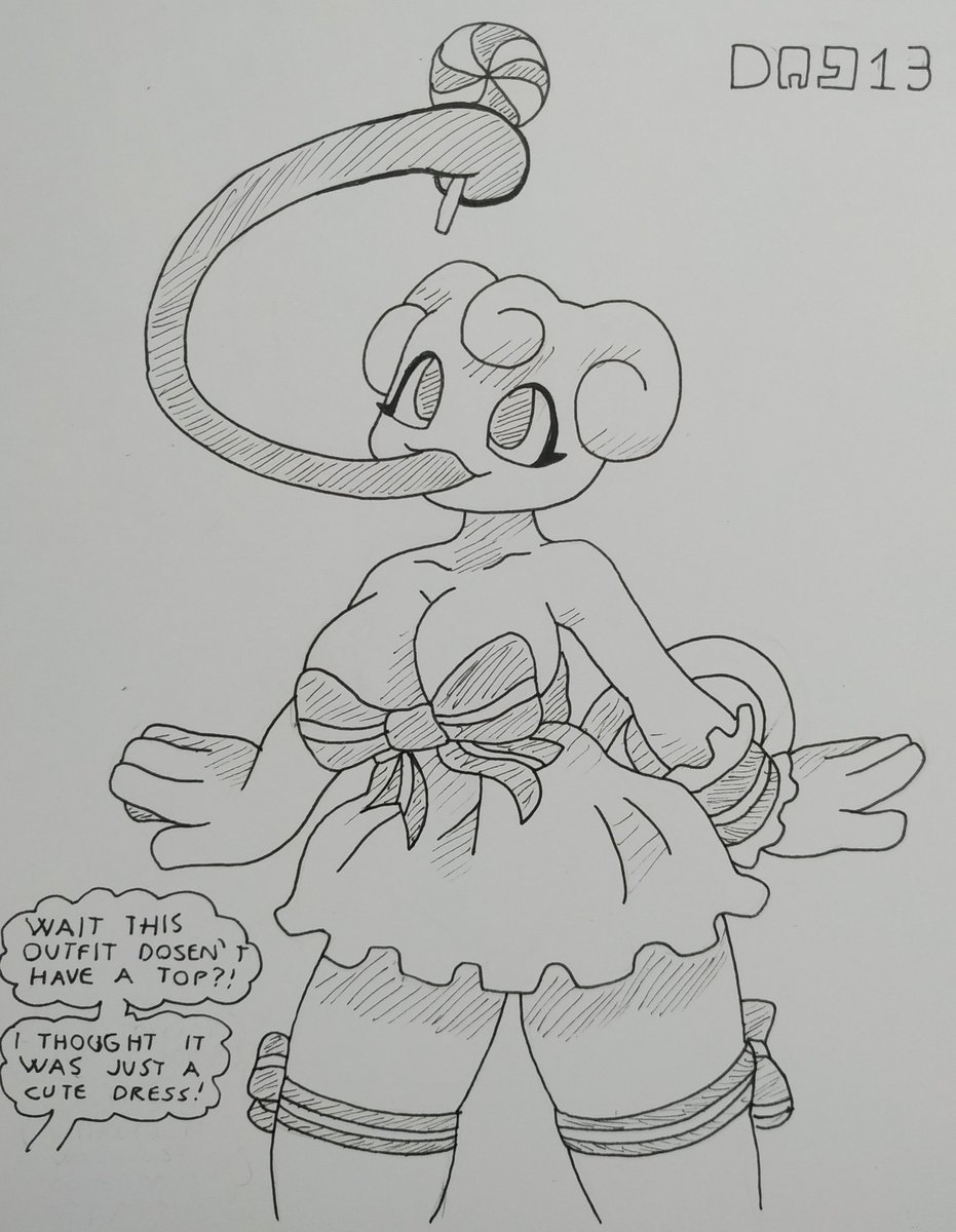 this outfit did trick me thinking it was an innocent one at first, fast! distract her with candy! (i may have made her more busty that she is, im gonna get bonked for that i'm sorry) day 13 of #Dressuptober #ink #inktober #art #dressuptober2021 #cutegirl #cute