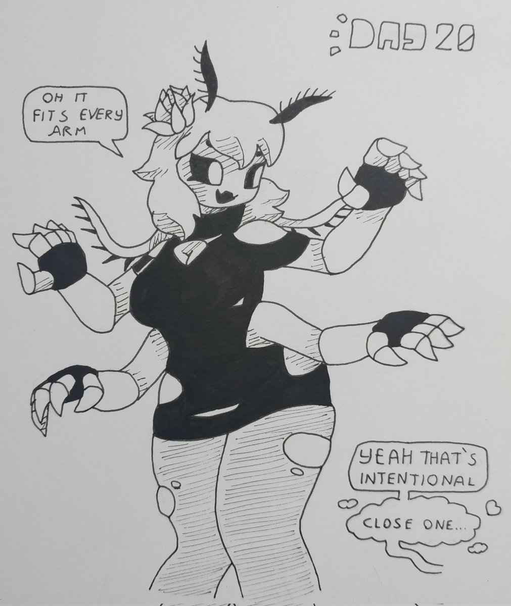 It works even with 6 arms!!! the future is here! day 20 of #Dressuptober character:Noira from @Ghostly_Pepper #ink #inktober #art #dressuptober2021 #cutegirl #cute #insect #insectgirl #mothgirl #moth