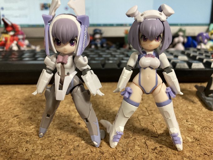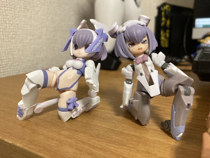 フェリルナビット届いた 箱は予想より小さかった 比較すると明確に顔が違うのがはっきりしてる 顔の///もない デザイン化した自立パーツの安定性が凄くてフレアより凄く動かしやすいし可動も増えてるのでやっぱお姉ちゃんだった #デスクトップアーミー #DTA