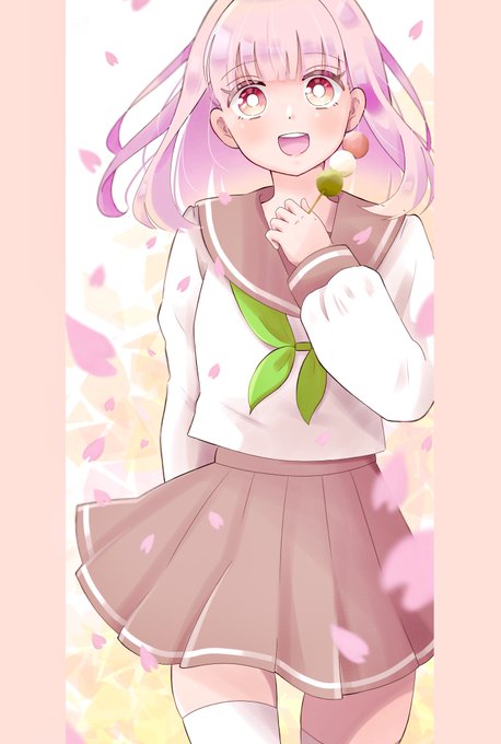 2 18 こんにちは🌞 だんだんとあたたかくなってきたので春のイラストを描きました🌸🌸🌸 なんとな〜く春っぽい色を集めてたら若干三色団子の擬人化みたいな女の子に…🤣 #イラスト 22/03/16 11:38
