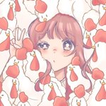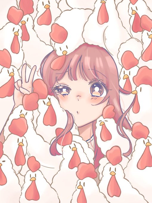 4 34 『かわいい』がテーマの #イラスト を描きました🌸🌸 まろ眉とインナーカラーをいれたのは初めてかもしれないです😳 ハマりそう❣️❣️ …やっぱりニワトリを描かないと気が済みませんでした笑笑 22/10/22 22:03
