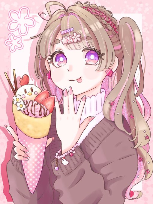 『かわいい』がテーマの #イラスト を描きました🌸🌸 まろ眉とインナーカラーをいれたのは初めてかもしれないです😳 ハマりそう❣️❣️ …やっぱりニワトリを描かないと気が済みませんでした笑笑