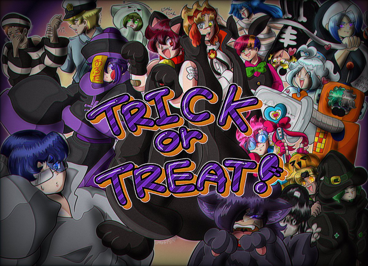 ✝️👻‼️TRICK OR TREATMENT ‼️🎃✝️ この日を待ってました〜っ‼️ pixivで描いてるキャラ(右)とドッキング〜♪ ちょっぴりダークなカンジデイイナァ😎 #ハロウィン #ハロウィンイラスト