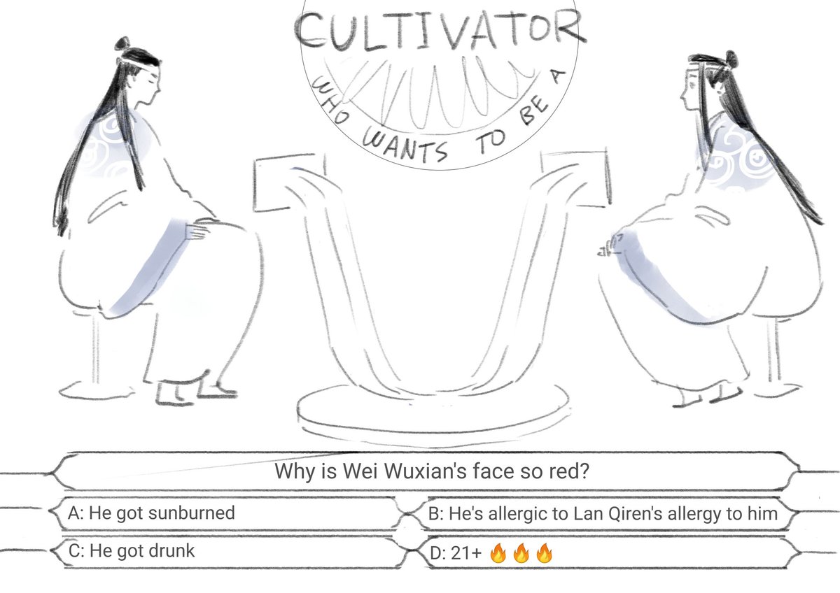 97 705 wip Lan Wangji chose "Ask the Audience" ahhaha Any ideas? 20/08/09 03:09