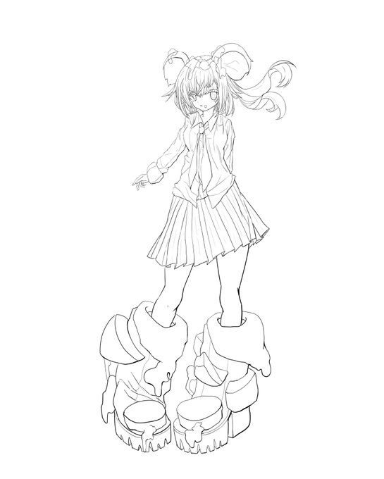 『リルディスプレイ』 本日はここまで描きました。 ラフからもう一度線画を描きまして、 装飾や靴などシルエットで何となく 形を作っていきます。 色も少しずつ決めていきます。 #夏の創作クラスタフォロー祭