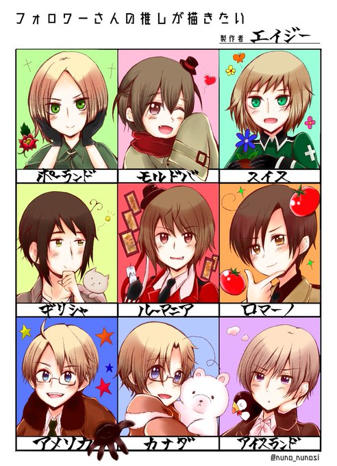 9 45 #フォロワーさんの推しが描きたい ヘタリアのキャラでまとめました!リクエストありがとうございました😊 アイス君は私の推し枠です👍 22/03/06 18:51