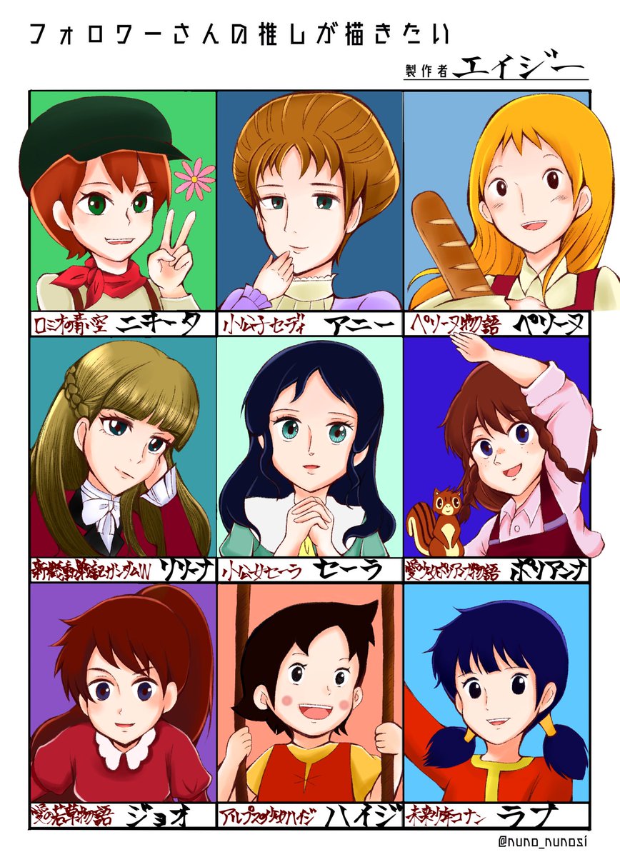 #フォロワーさんの推しが描きたい 世界名作劇場等懐かしアニメでまとめました!リクエストありがとうございました✨ ハイジとラナちゃんは私の推し枠でございます👍