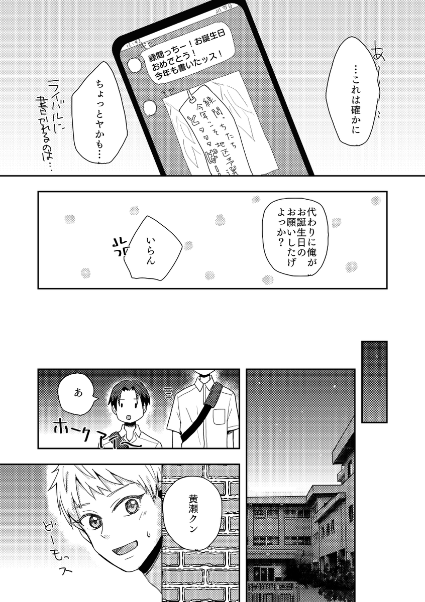 黄瀬くんハピバ~!! リクエストいただいたチャリアカーデートで誕生日まんがにしました。高校あがって一緒に下校することがなくなっちゃってさみしくなった黄瀬くん…みたいな。リクありがとうございました! #黄瀬涼太生誕祭2022