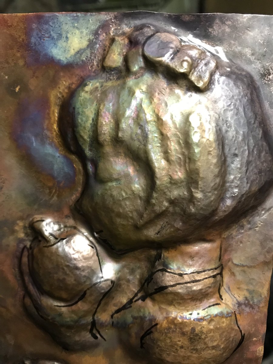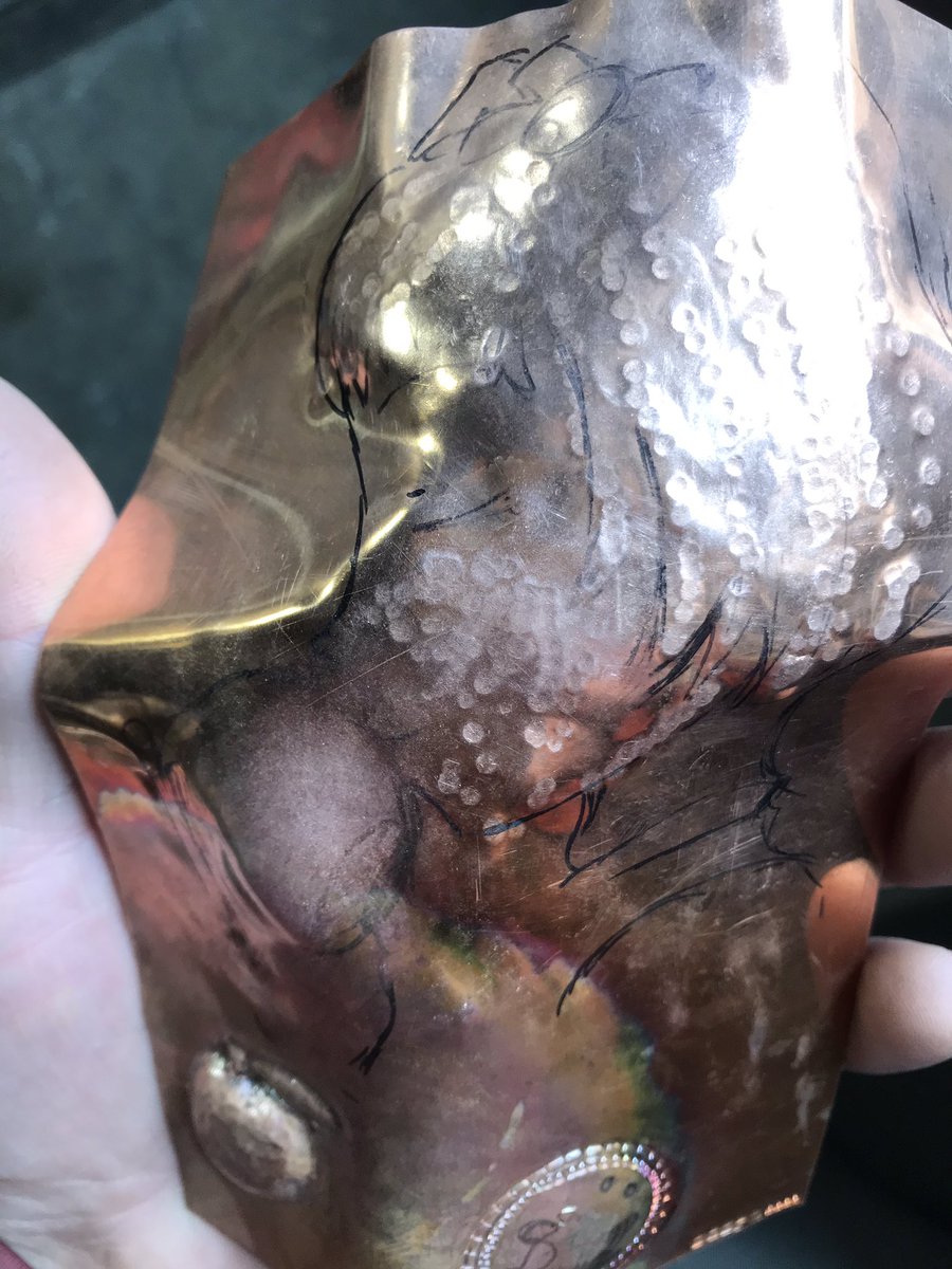 工藤忍といえばハンマーでお馴染みですので 当て金とハンマーで0.5ミリ厚の銅板叩いてます ゲロ難しい ここからどこまで近づけられるか