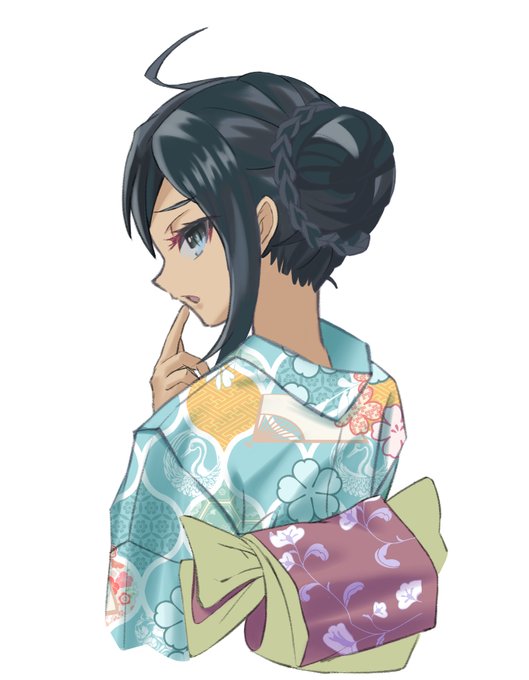 1 4 (´ε` )浴衣が描きたくて、いちあっぷさんの浴衣のコツで練習開始、一枚目。 #イラスト練習 21/08/09 22:16
