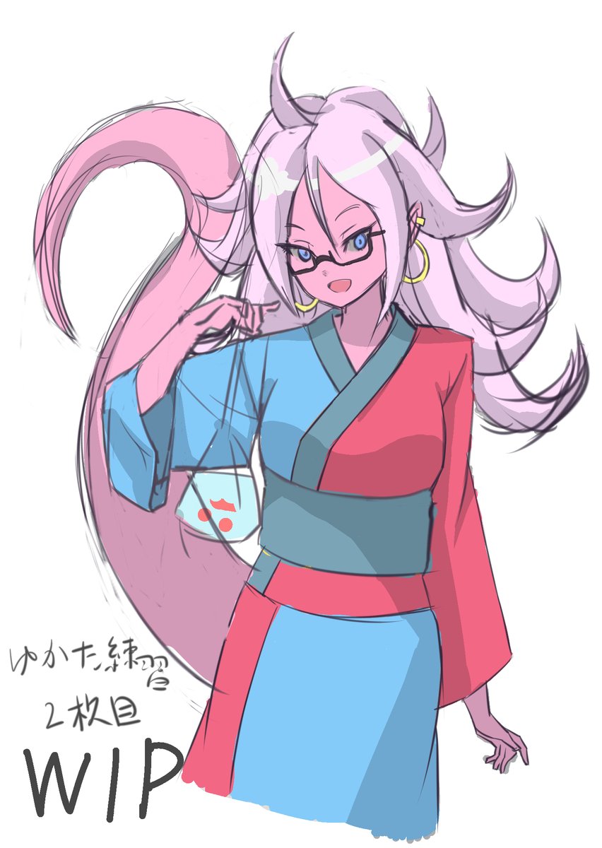 (´ε` )浴衣練習の2枚目やっとできた! #人造人間21号 #イラスト練習