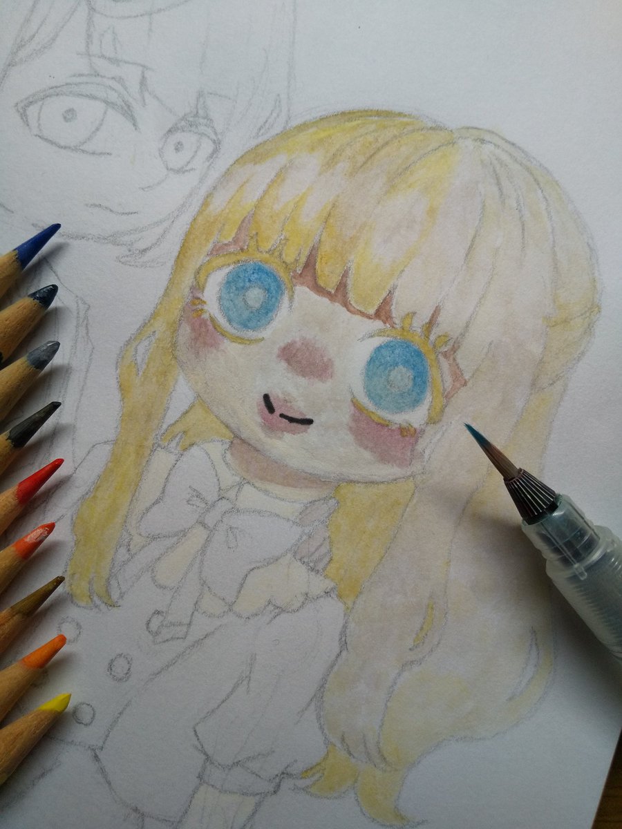 今日の進み具合 輪郭部分むちゃ頑張って白のせました…この子の肌はできるだけ白くしたい #イラスト #イラスト好きさんと繋がりたい #イラスト好きな人と繋がりたい #絵描きさんと繋がりたい #色鉛筆 #色鉛筆イラスト ←yesterday today→