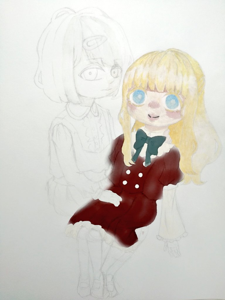 服もっとシックな色にしていくから待っててね💦 私服のセンス無いから描くの辛いな… #イラスト #イラスト好きさんと繋がりたい #絵描きさんと繋がりたい #色鉛筆 ←yesterday+α Today→