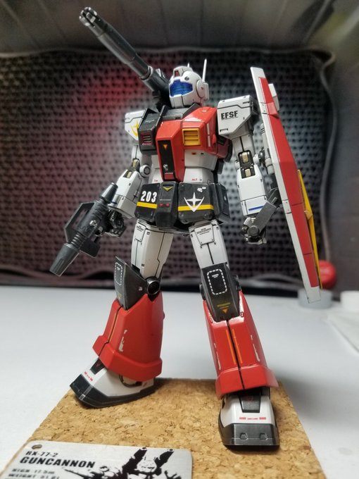 ジムキャノン完成しました。 MSV版に思い入れがあるせいかやけにスタイリッシュ過ぎるオリジン版になんか違うと感じる。 まぁせっかくなのでオリジン版ということでデカール派手目にやってみました。 #ガンプラ改造 #ガンプラ #ガンプラはどんな自由な発想で作ってもいいんだ